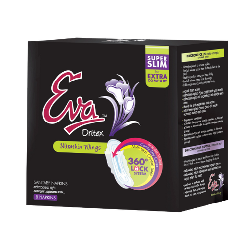Eva Dritex Ultra Wings Super Slim for extra comfort 360 degrees lock system multi leak control line, comfy dry cover Sanitary Napkins. 8 pads